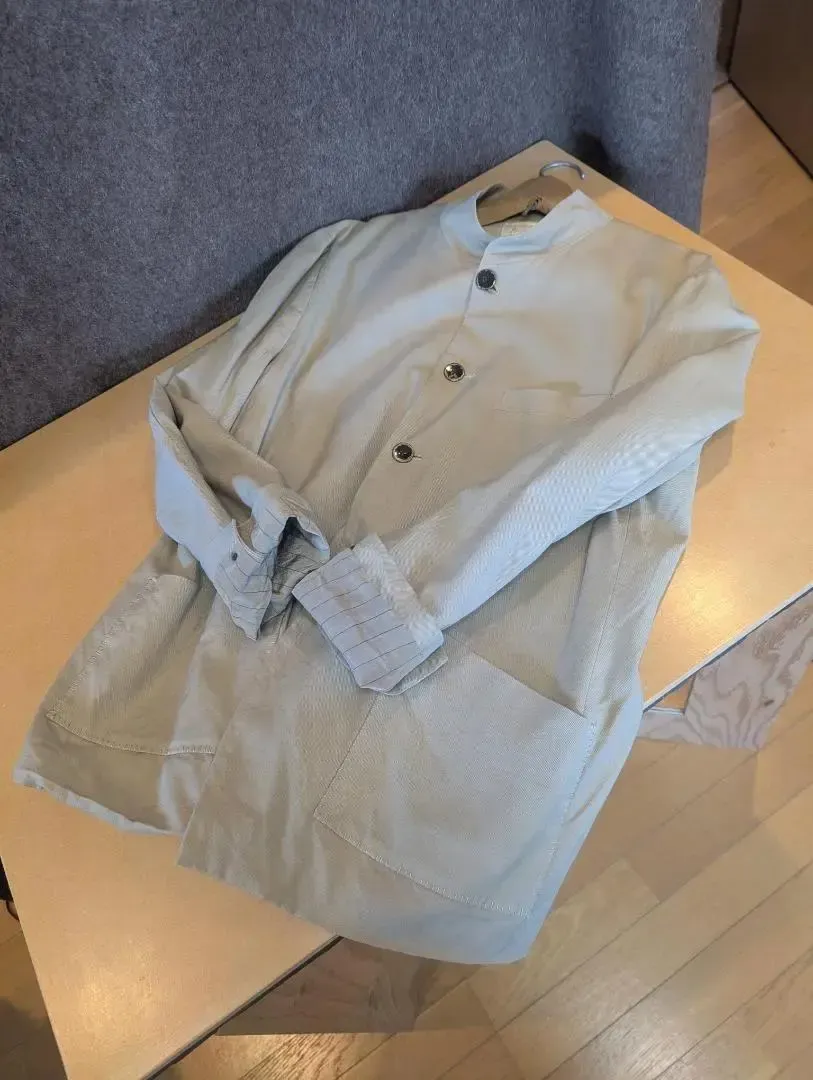 ブランドならではの雰囲気のある生地感と、手仕事の温もりが感じられる佇まいが魅力の一着。素材にはウールとシルクが使われており、滑らかで上質な肌触りです。