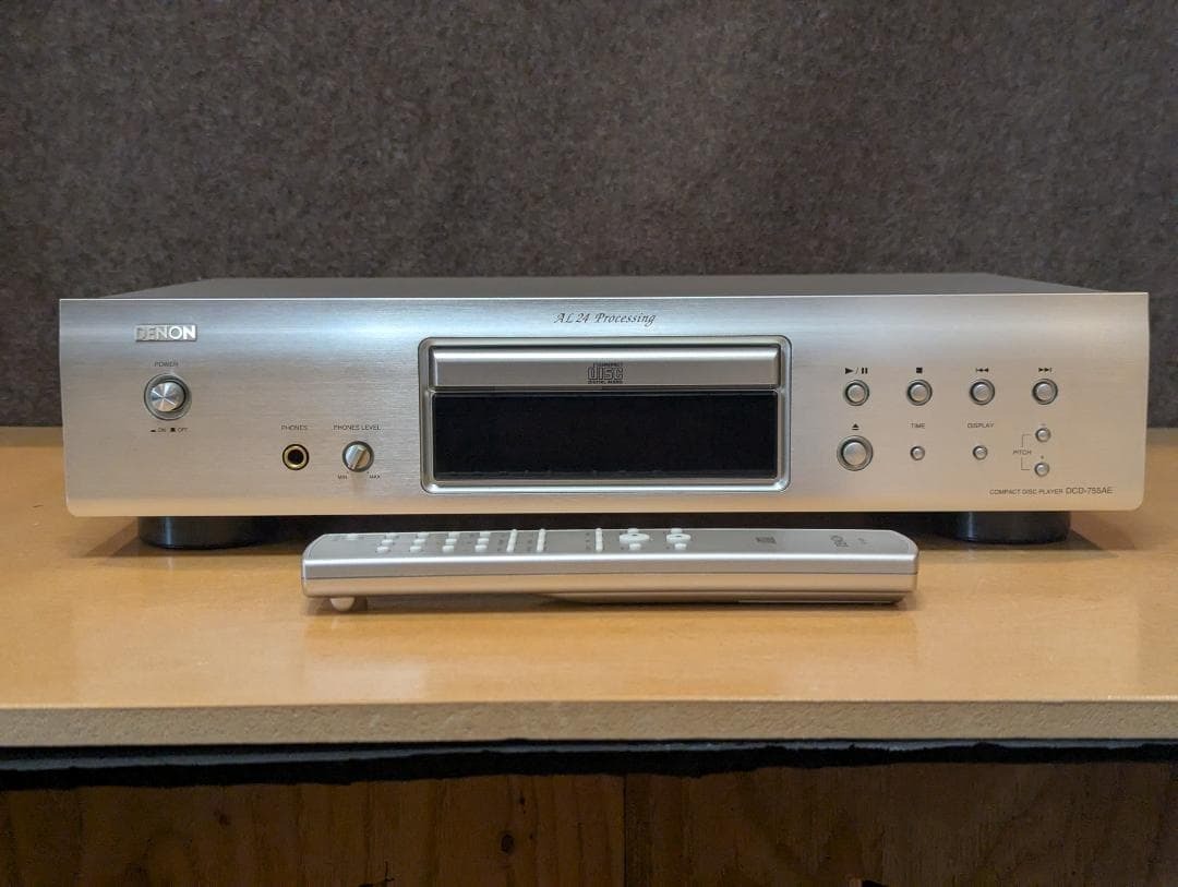 ご覧いただきありがとうございます。 デノン独自の高音質化技術「AL24 Processing」を搭載し、クラスを超えた繊細で奥行きのあるサウンドを実現した名機「DCD-755AE」です。 現在でも非常にファンの多いモデルですが、本機は弱点であるトレイ駆動部のベルトを新品に交換済みですので、今後も長く安心してお使いいただけます。 ■ メンテナンス・状態 トレイベルト交換: 劣化しやすいゴムベルトを新品に交換済みです。トレイの開閉はスムーズで、読み込みも非常にスピーディーです。 清掃・点検: 内部・外部ともに清掃を行い、ピックアップレンズのクリーニングおよび動作確認を実施済みです。 動作: CDの再生、選曲、リモコン操作、ヘッドホン出力、ピッチコントロール等、すべての機能が正常に動作することを確認しています。 外観: フロントパネルは非常に綺麗で清潔感があります。天板に経年による小傷がございますが、ラックに収めれば目立たない程度です(画像にてご確認ください)。 ■ 本機の特徴 AL24 Processing: 16bitのデジタルデータを24bit相当のクオリティで再現し、滑らかなアナログ波形を再現します。 高精度DAC: 優れたD/Aコンバーターにより、クリアで力強いデノンサウンドを楽しめます。 ピッチコントロール機能搭載: 音楽制作や楽器練習にも便利です。 ■ 主な仕様 再生対応:CD、CD-R/RW(MP3/WMA対応) 外形寸法:幅434x高さ107x奥行279mm 重量:約4.0kg 製造:2006年製(Made in Japan) ■ 付属品 純正リモコン(RC-1028) ※電池室も液漏れなく綺麗です。 電源ケーブル(本体直付け) ■ 発送について 精密機器ですので、緩衝材を十分に使い、丁寧に梱包して迅速に発送いたします。 メンテナンス済みの良コンディション個体をお探しの方、ぜひご検討ください。