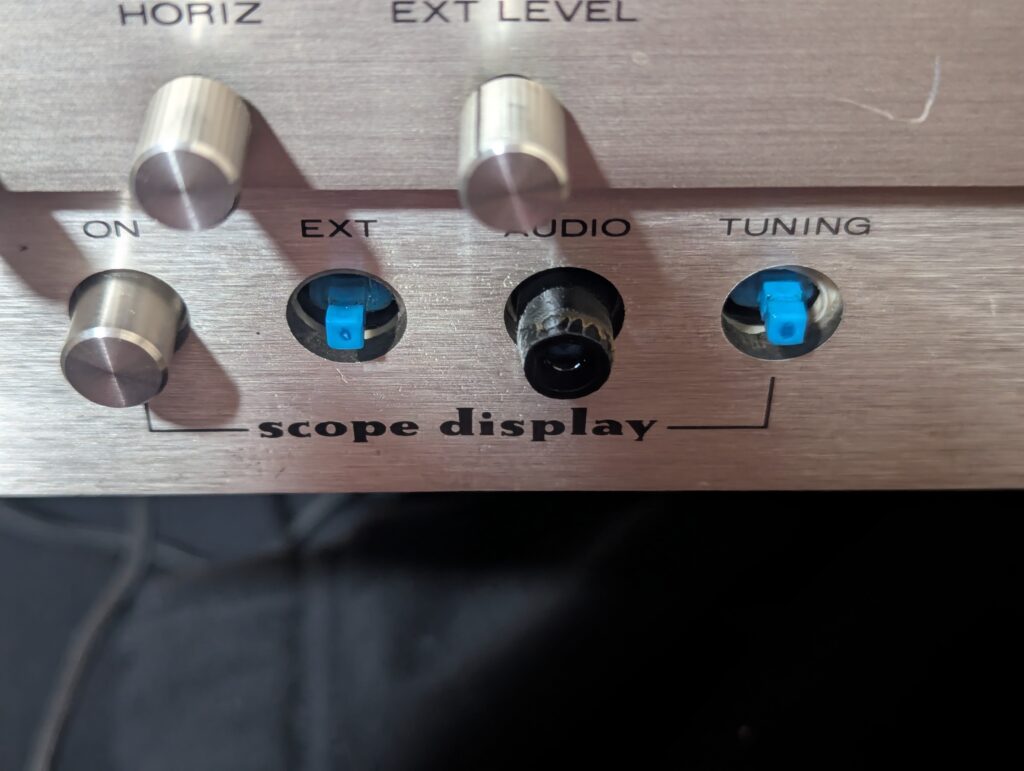• オシロスコープ:これが最大の問題でした。CRTの中央に、力のない緑色の点が一つ浮かんでいるだけ。オーディオ信号を入れても、チューニングダイヤルを回しても、光点は微動だにしません。