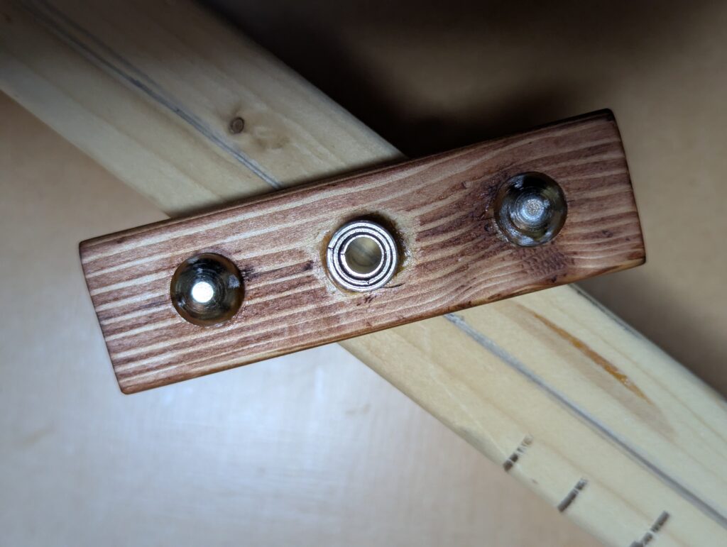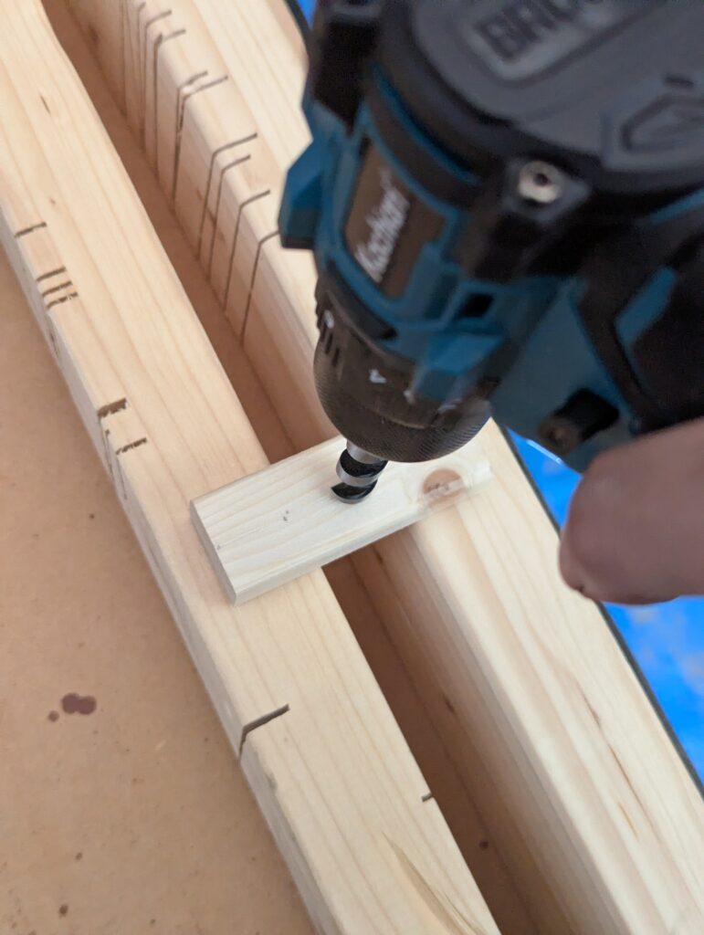 二枚の板がずれる墨出しの精度や垂直に穴を空けていないスコヤなどを用いて正確に墨をつける。また、ドリルガイドを用いて垂直に穴を空ける。