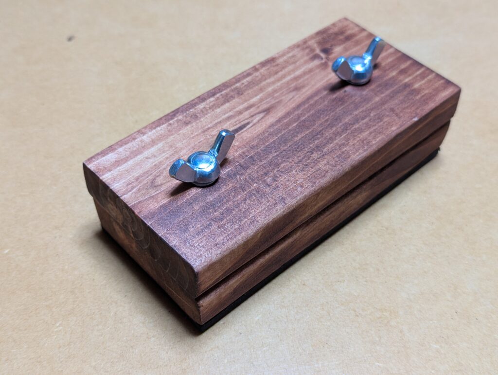 製作した治具(センタードリルガイドとサンドペーパーホルダー)の写真 道具の自作・修理