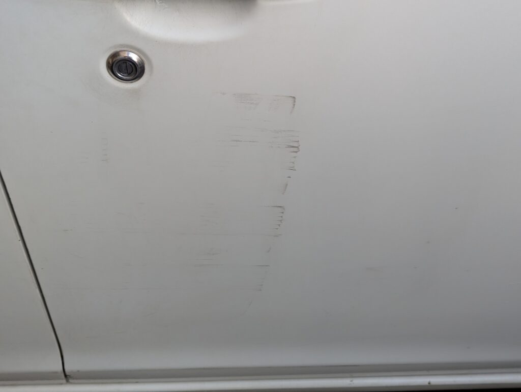 車のボディに擦り傷がついたため、耐水ペーパーで研磨して補修しました。